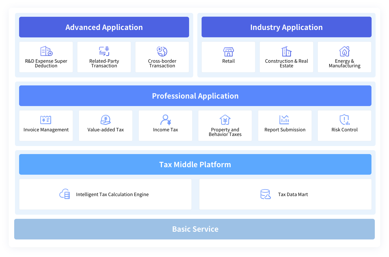 Automating tax compliance and risk monitoring in real-time through a smart engine, while transforming multi-source data into actionable tax insights (burden/benchmark/trend analysis). AI-powered planning provides entity-specific tax calculation and optimization, delivering cross-industry efficiency gains and sustainable cost savings